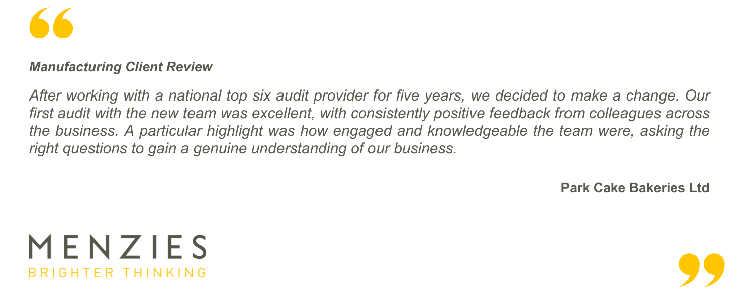 Manufacturing is an important sector for Menzies, and we work closely with our clients through our specialist team to provide them with practical solutions to sector challenges. As the manufacturing sector continues to develop in uncertain times, through technology advancements, global competition, and supply chain disruptions, we continue to provide our clients with timely advice and assistance to enable them to navigate the challenges and optimise opportunities that arise through effective financial management and solid financial data.