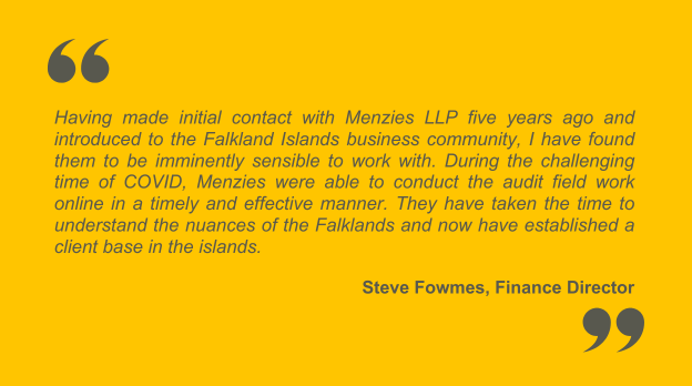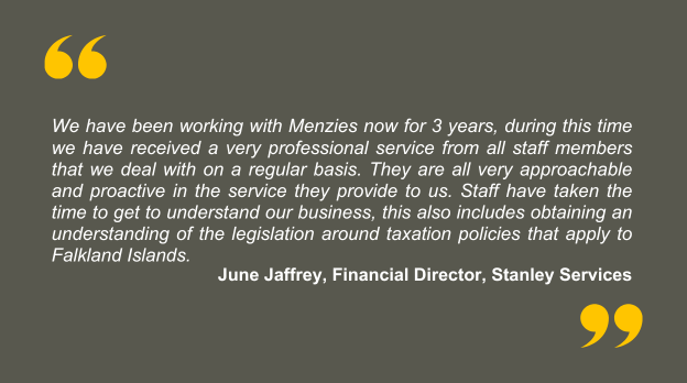 At Menzies LLP, we’re dedicated to accelerating your ambitions—whether you’re a business or individual based in the Falkland Islands. Our goal is to help you achieve yours.